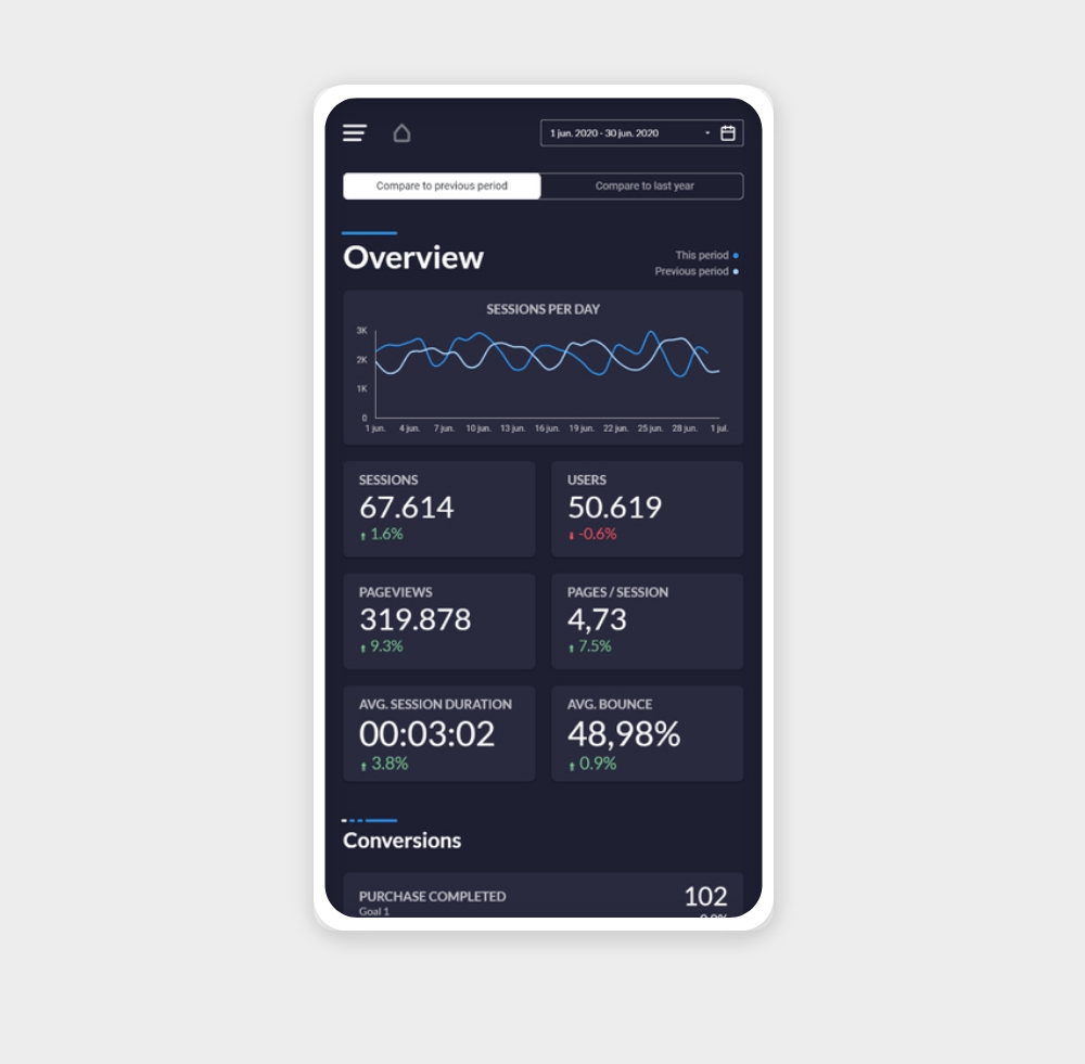 Unlock the full power of your Google Search Console data with 300+ charts across 15 pages. Track rankings, clicks, CTR, branded vs non-branded traffic, mobile vs desktop, locations, and focus keywords — all with one-click period comparisons.